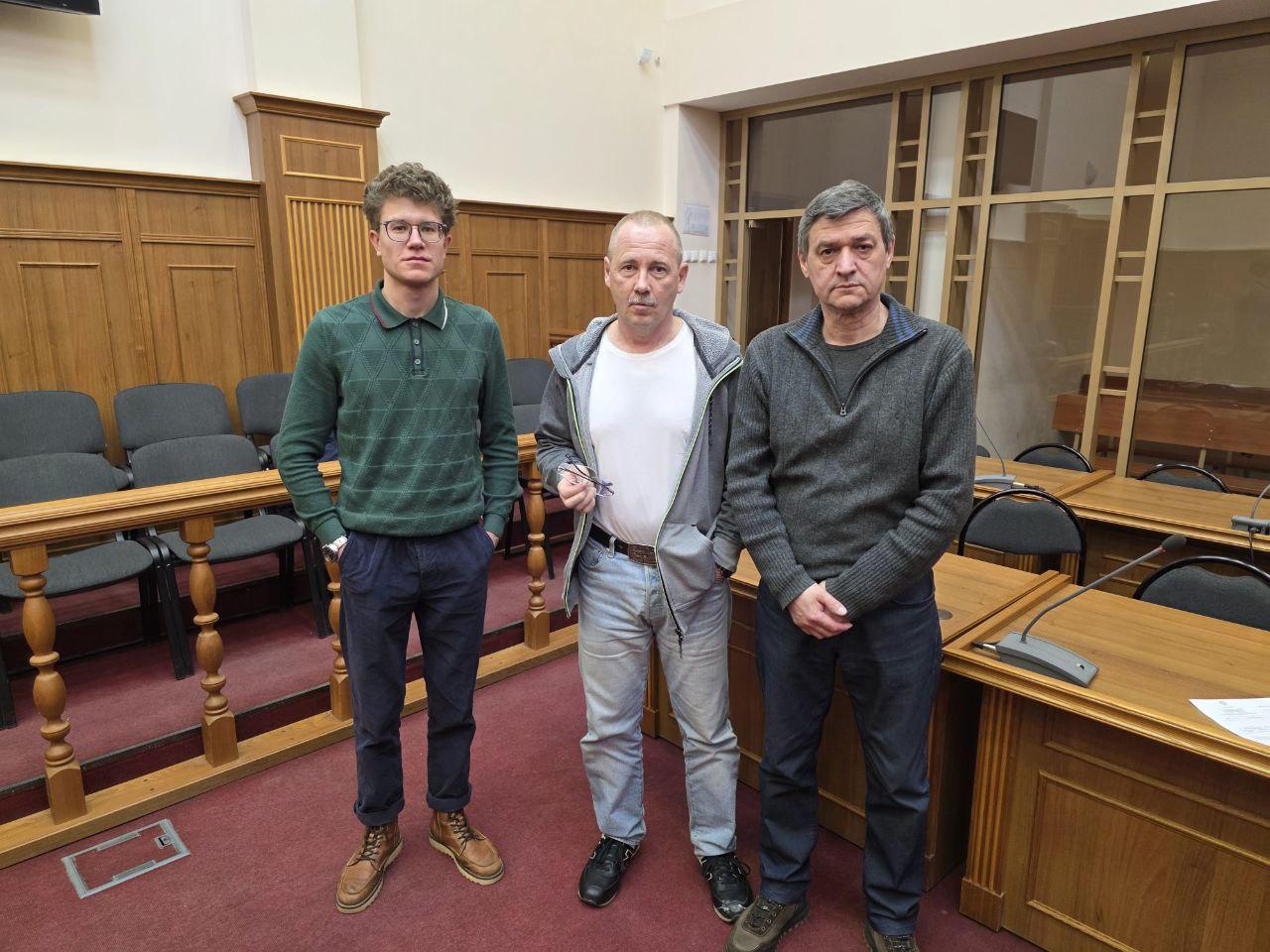 На фотографии Сергей Федерягин (крайний справа) с адвокатами Львом Чукреевым и Сергеем Колосовским (слева направо), которые помогали ему выйти из СИЗО
