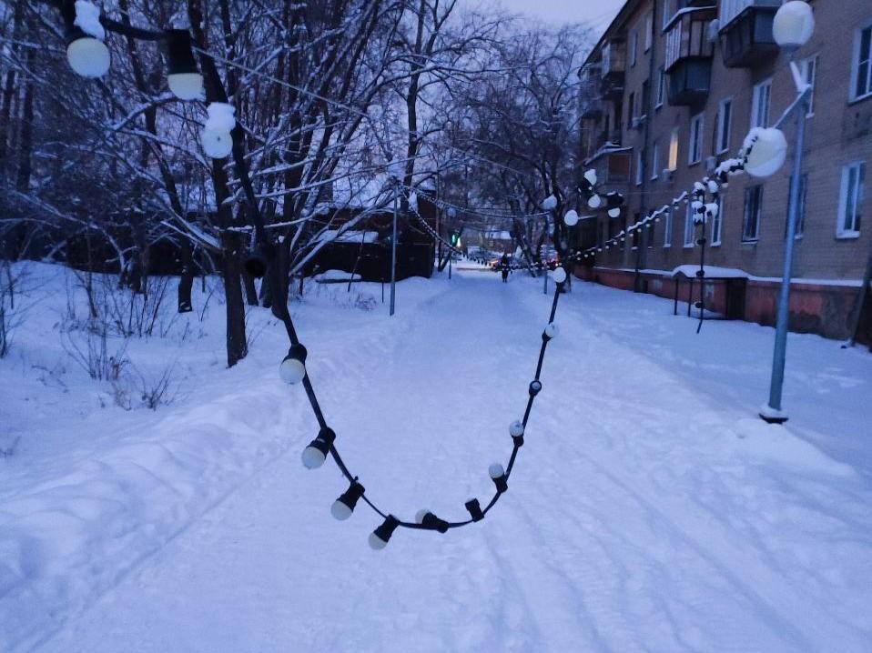 По словам жителей, гирлянда провисела в таком виде почти неделю.