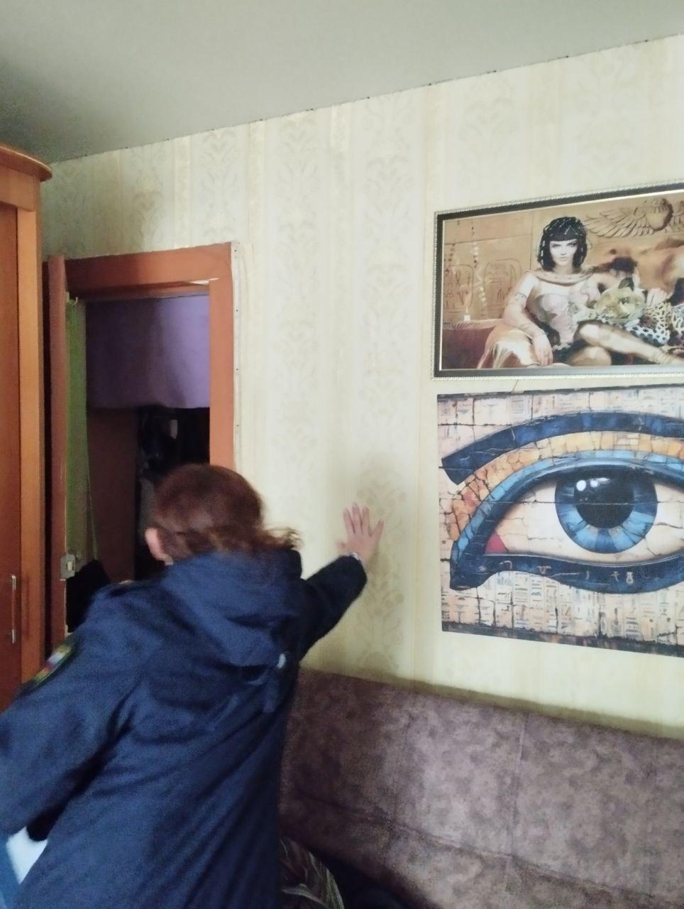 Влажная стена в квартире, где в результате аварии погибли попугаи.