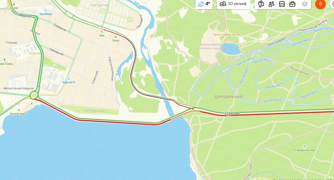 Два ДТП на плотине Шершневского водохранилища утром 26 марта создали препятствия для транспорта, следующего в центр города.