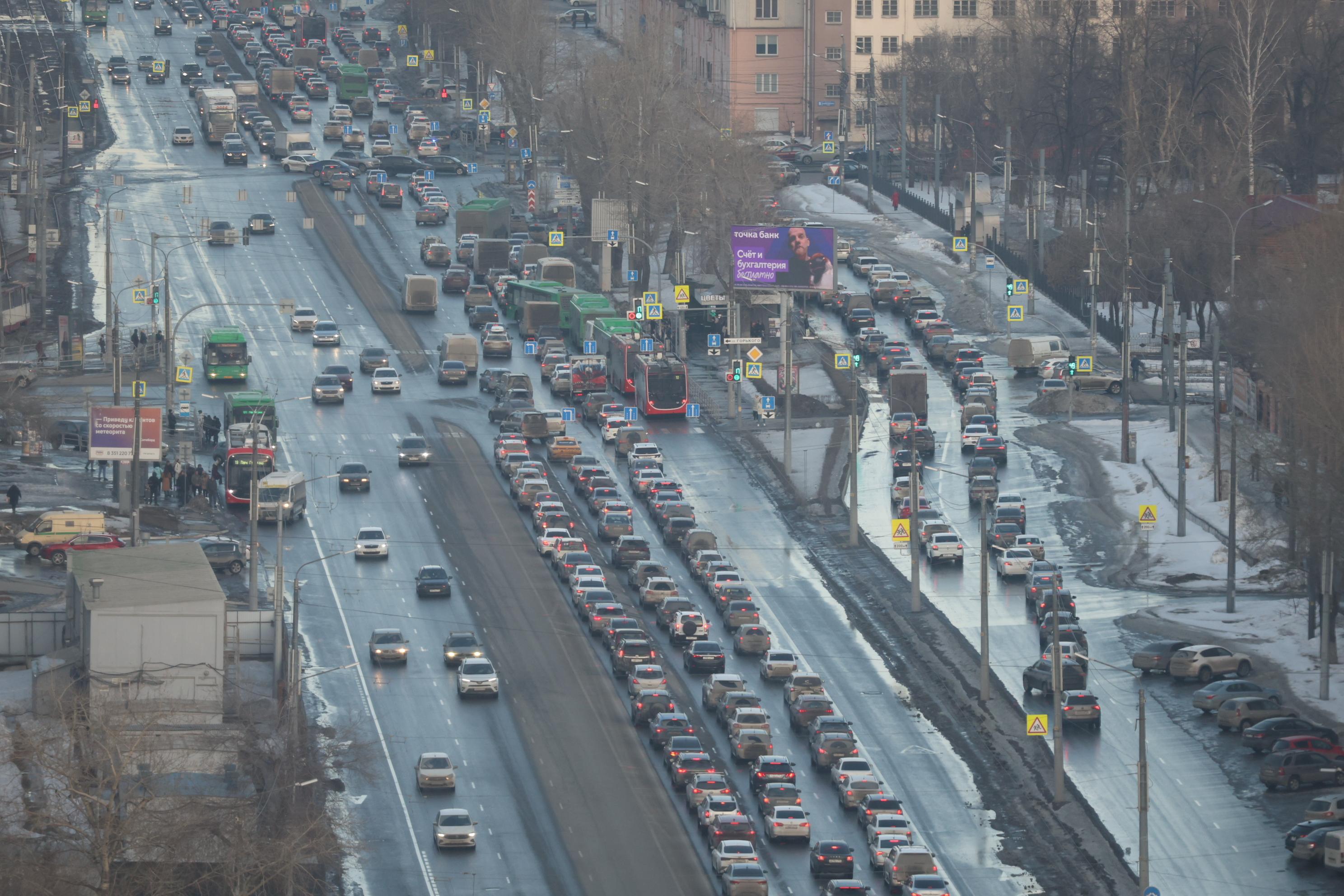 На проспекте Ленина в направлении центра также наблюдается интенсивное движение с образованием заторов.