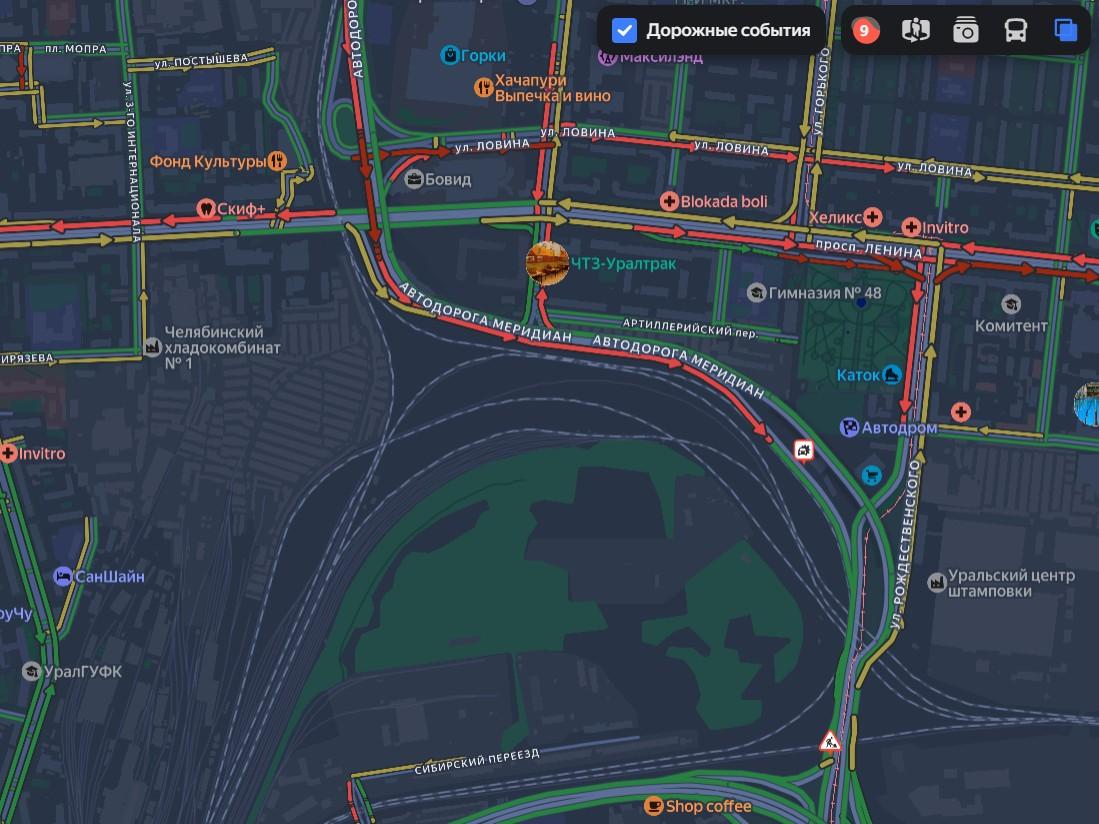 Пробки в Челябинске вечером 16 марта достигли 9 баллов по оценке «Яндекс». ДТП на Меридиане перекрыло дороги в Ленинский район и на ЧТЗ.