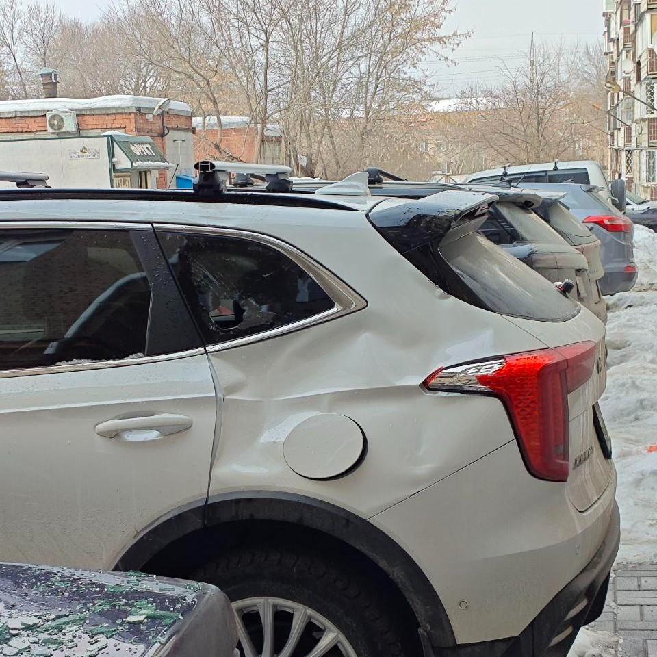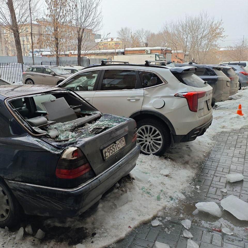 Лед с крыши в Челябинске разбил автомобили