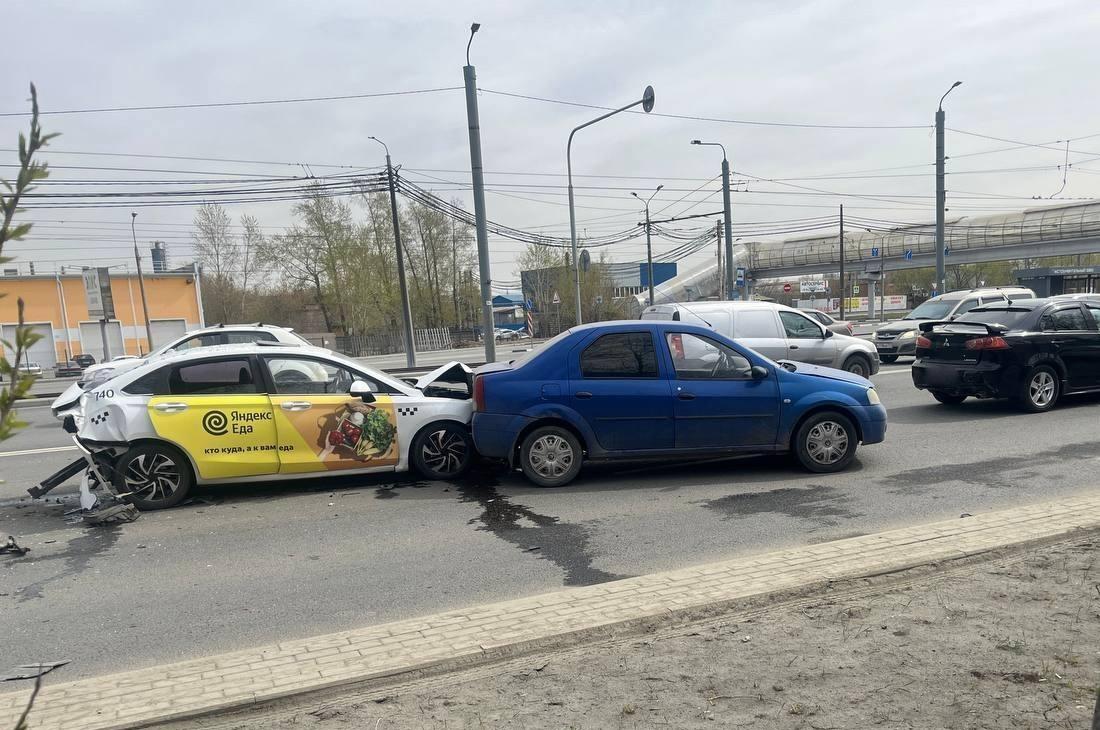 Участниками аварии стали Toyota Corolla, BAIC u5 Plus с ливреей сервиса «Яндекс Такси», Renault Logan и Mitsubishi Lancer.