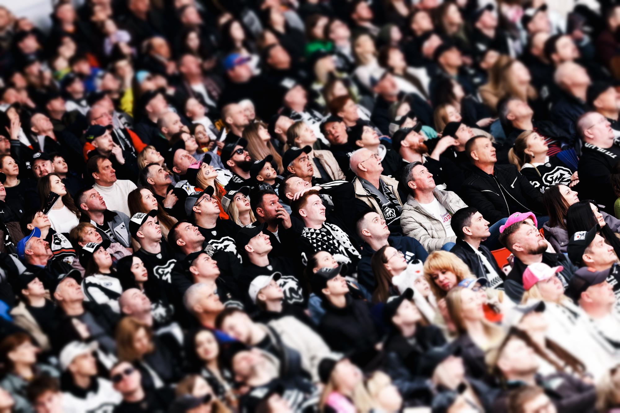 Болельщики встают с мест, чтобы поддержать свою команду.
