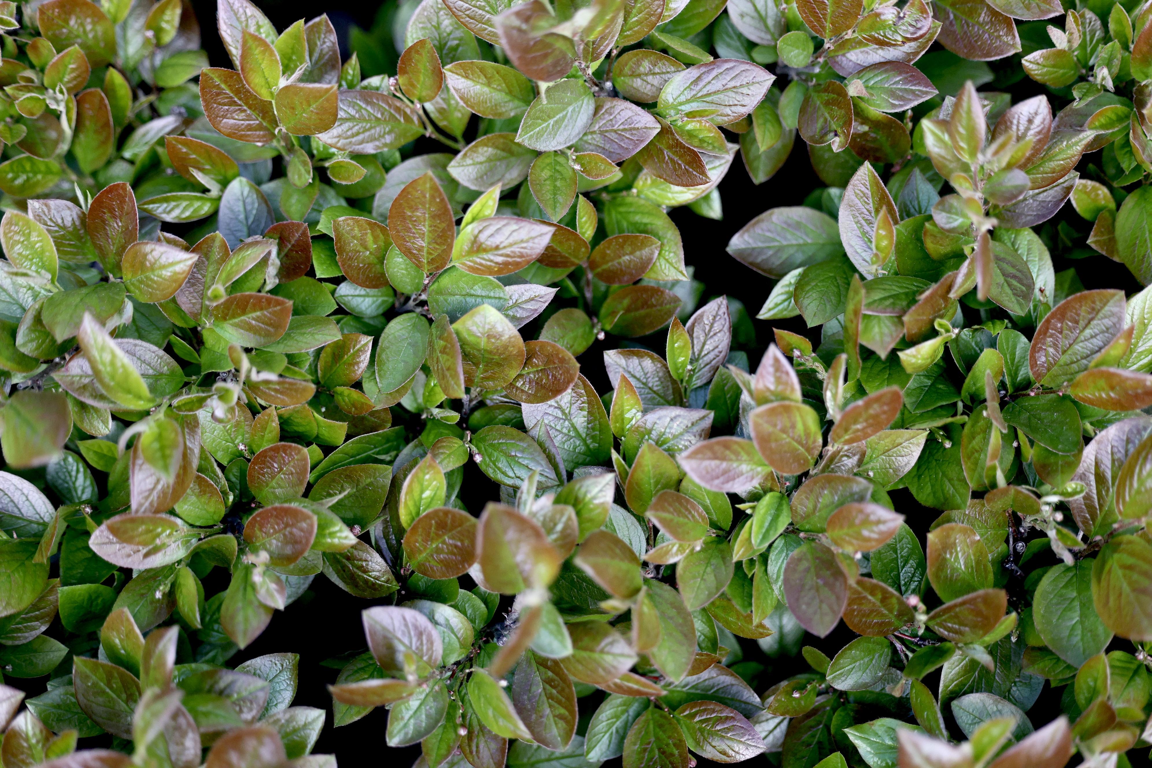 Липкие молодые листья кизильника привлекают внимание необычной расцветкой