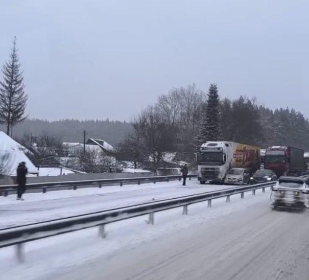 Столкновение фуры с легковым автомобилем произошло на трассе М-5 вблизи города Миасс. Движение транспорта по направлению к Уфе было полностью парализовано, о чем сообщили читатели издания 74.RU в воскресенье, 14 декабря.