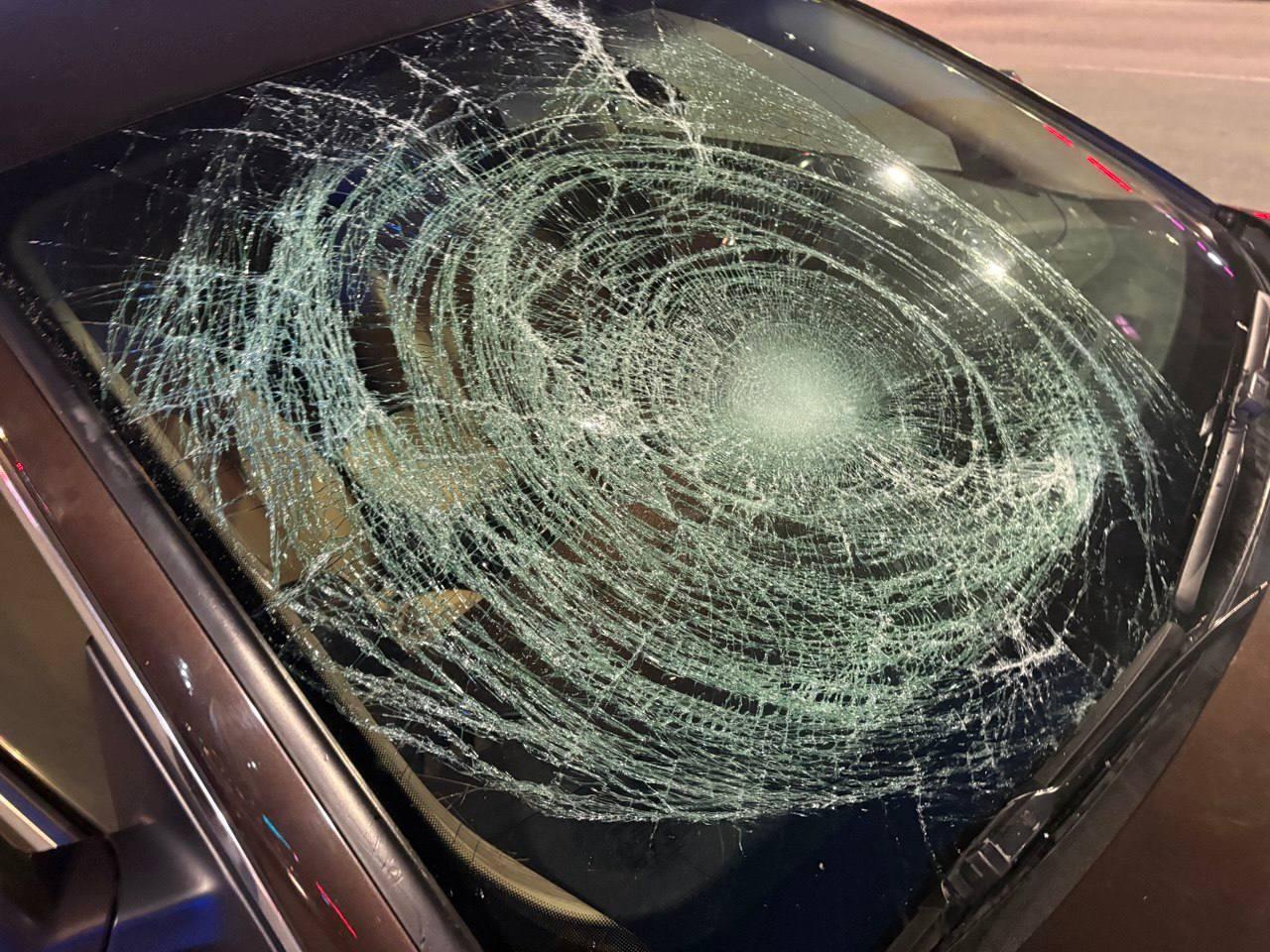Столкновение привело к повреждению лобового стекла автомобиля.