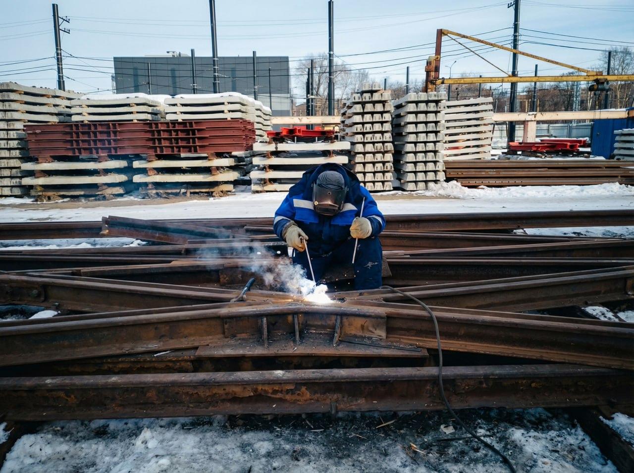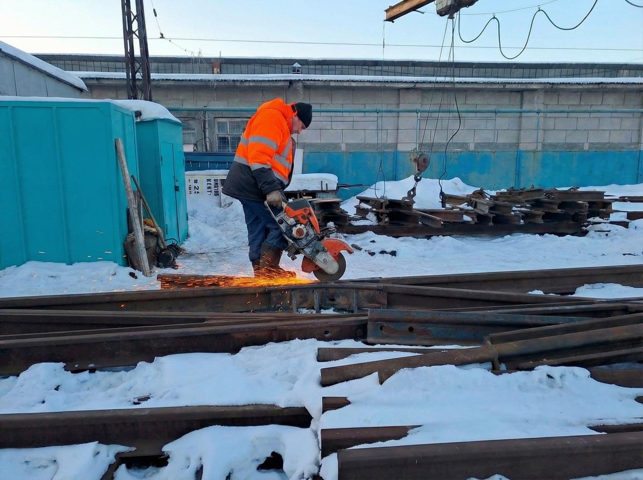 В настоящее время рабочие занимаются демонтажем старых рельсов.